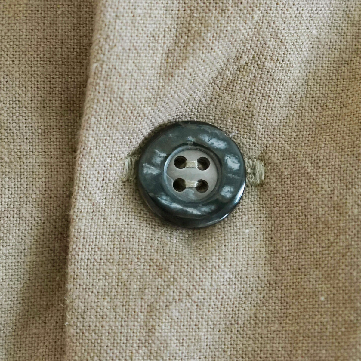 ボタンは黒蝶貝の模様を生かした、象牙のようにとても美しい貝ボタンです。