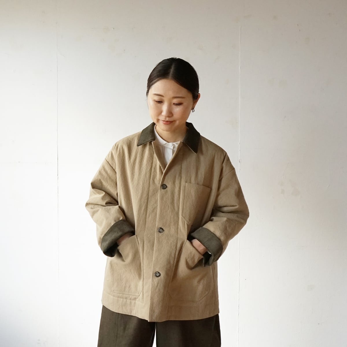 コットンリネン中綿キルティングショートコート[ソイルベージュ]