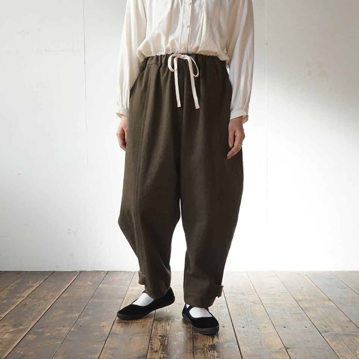 身幅がとてもゆったりしていて裾しぼみのシルエットが特長です。