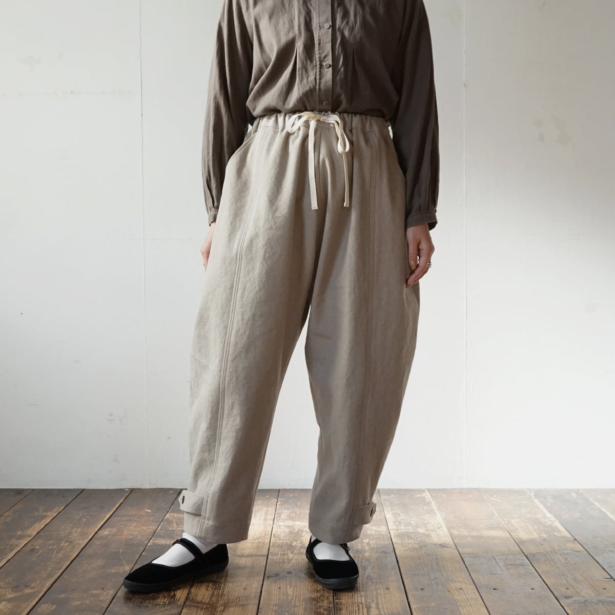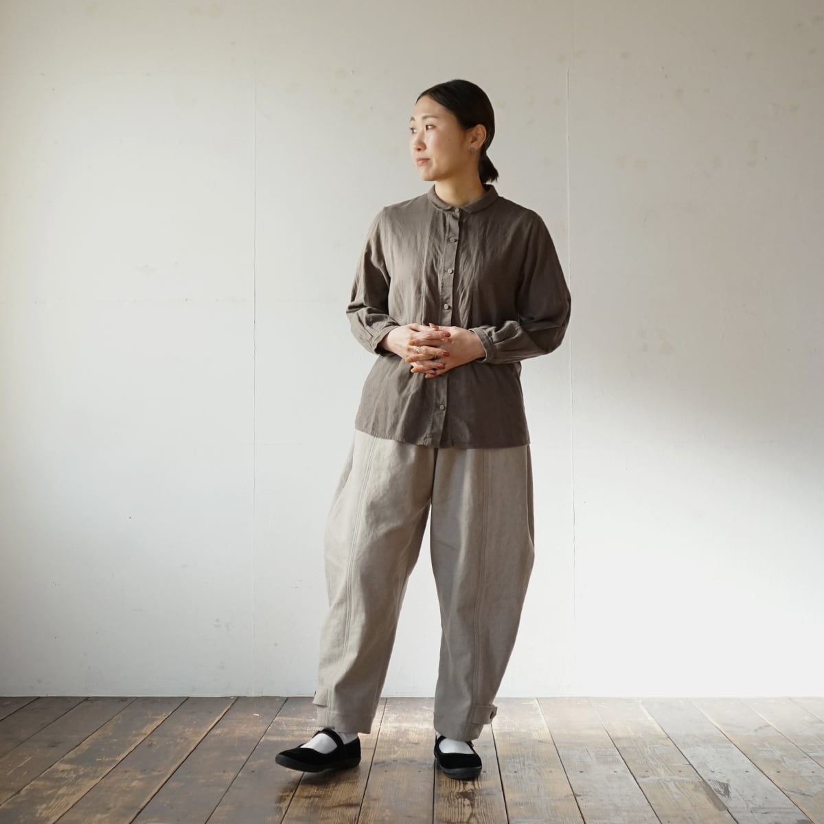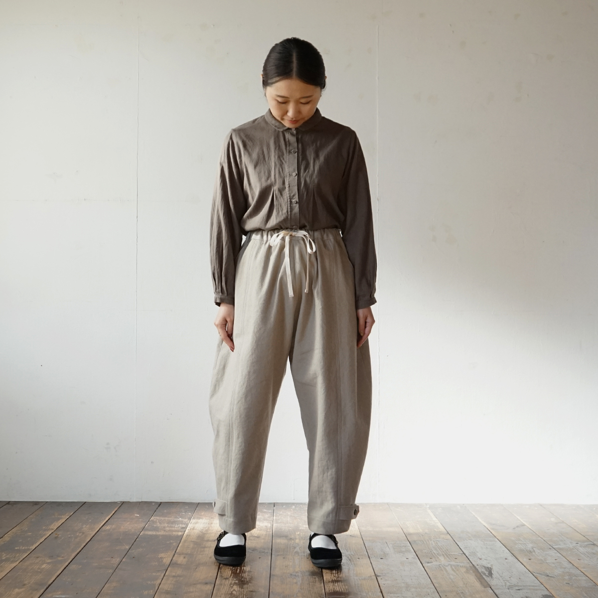 身幅がとてもゆったりしていて裾しぼみのシルエットが特長です。
