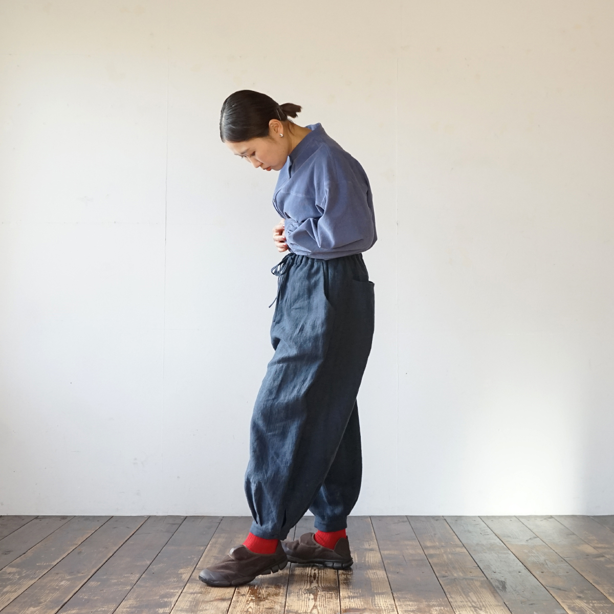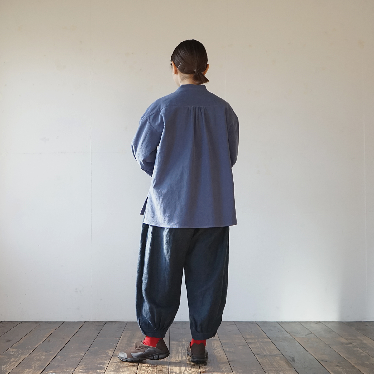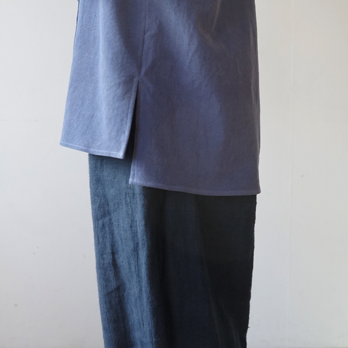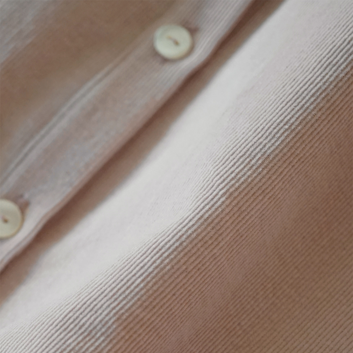 シャツに良く合う細畝のコーデュロイ。何とも言えない柔らかなニュアンスの色は東炊きならではです。生地の触感もふんわり柔らかく温かみがあります。