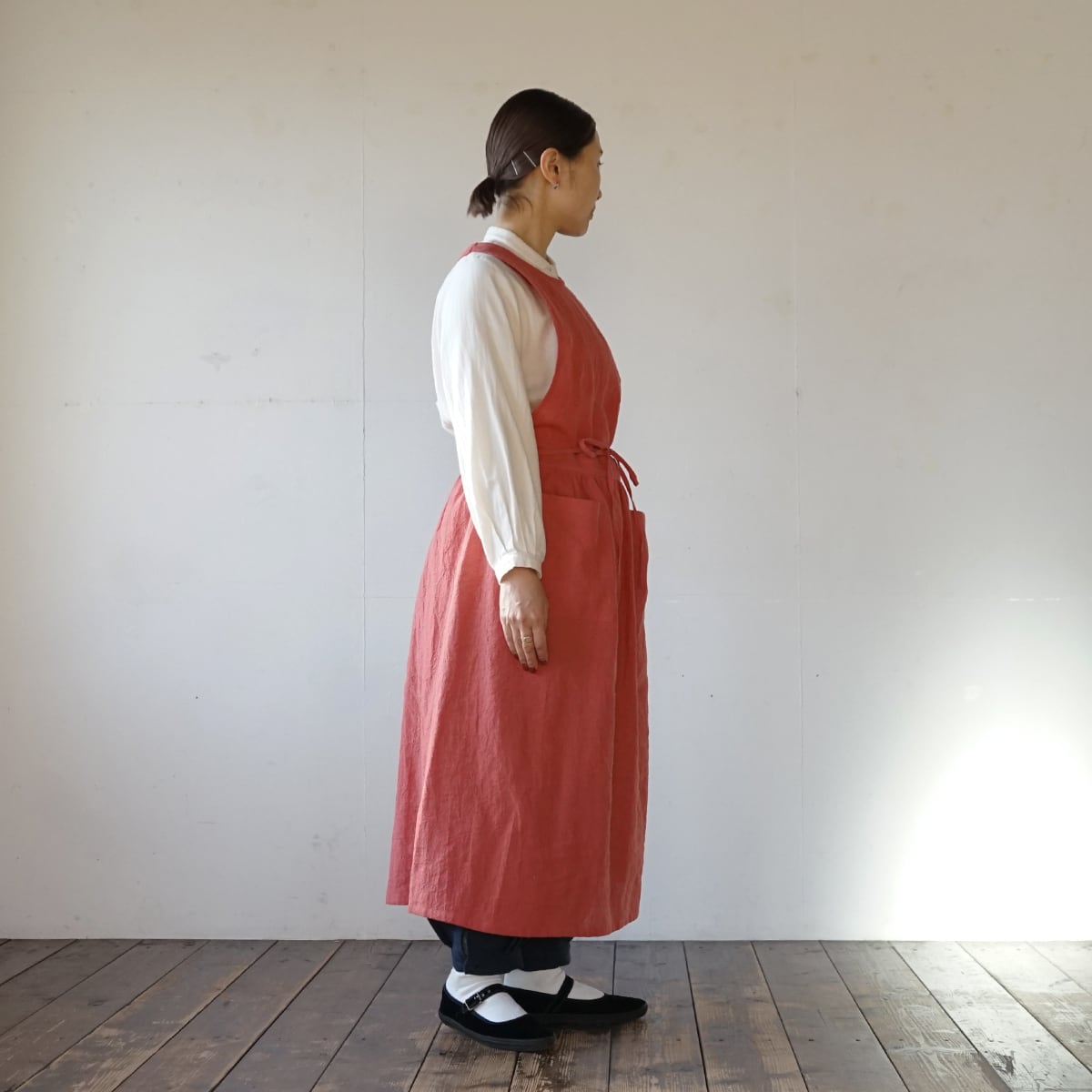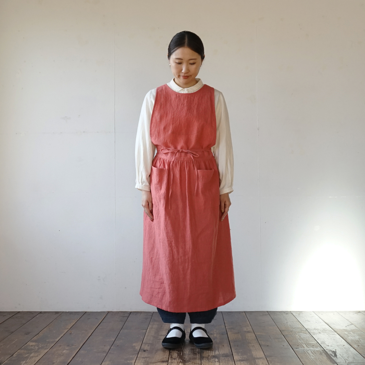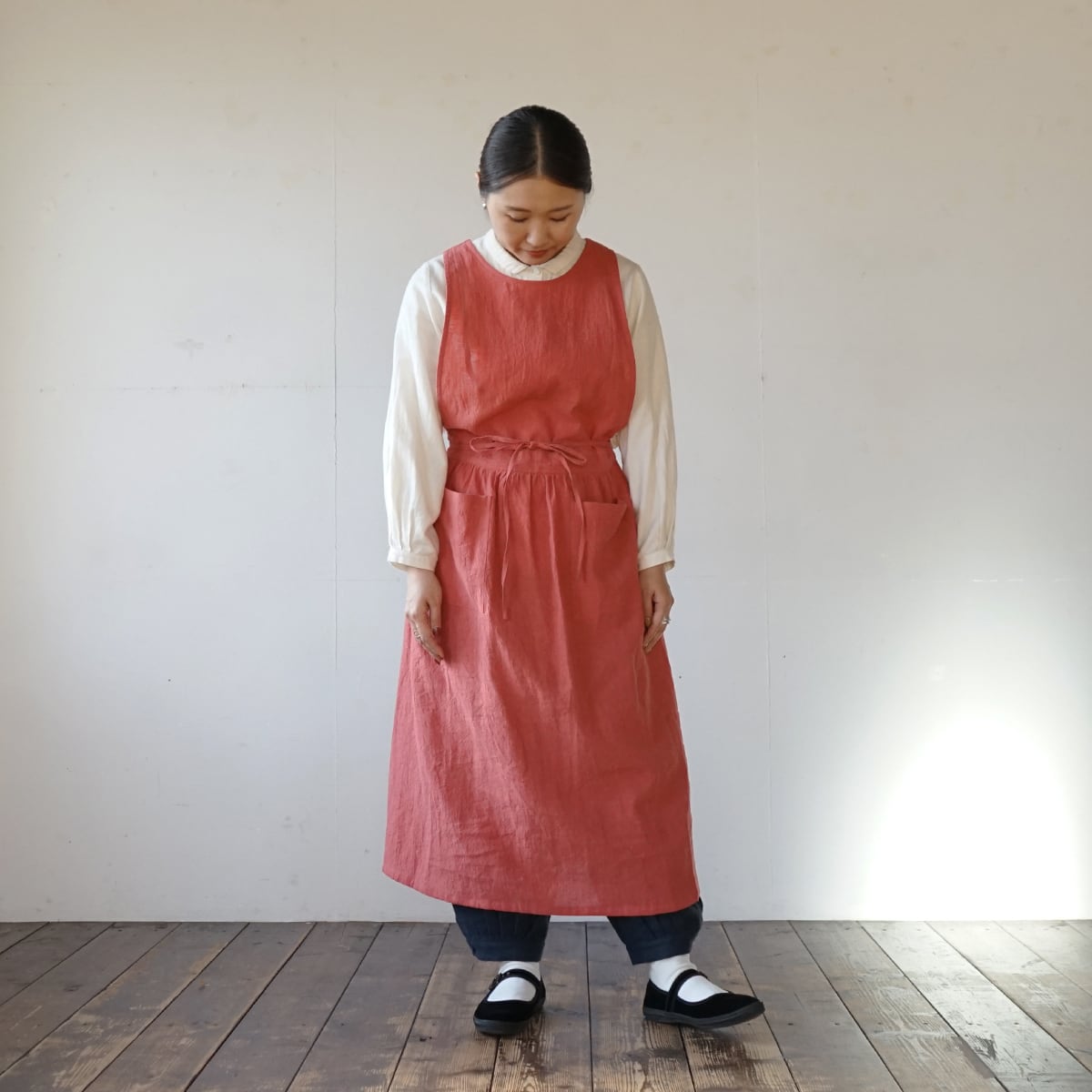 エプロンだけでなく、ワンピースとしても使って頂ける1着になるようにとの思いを込めてつくりました。
