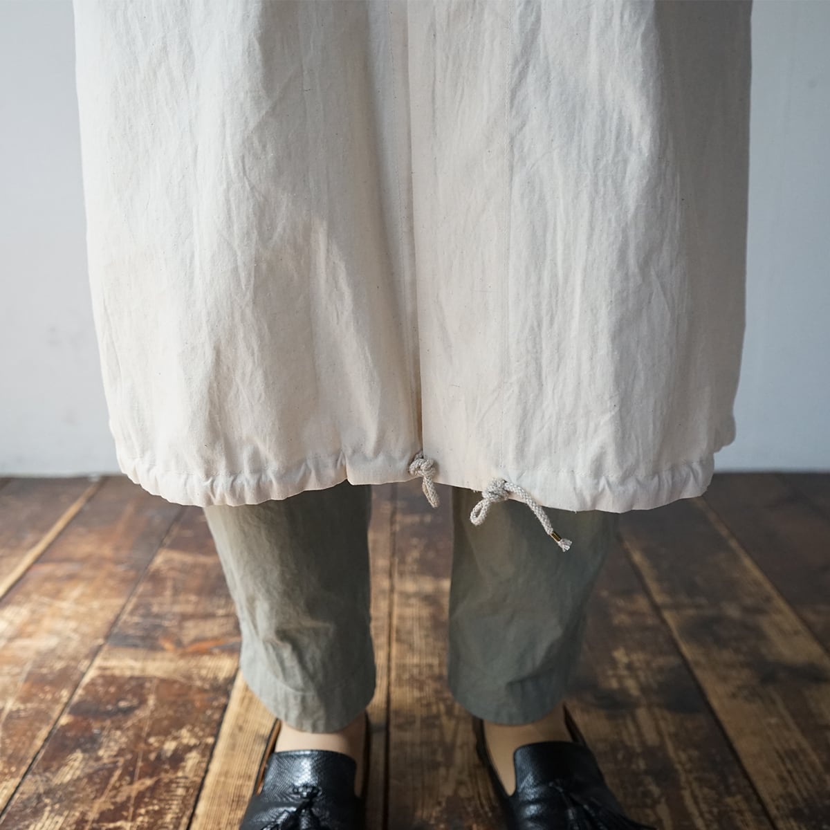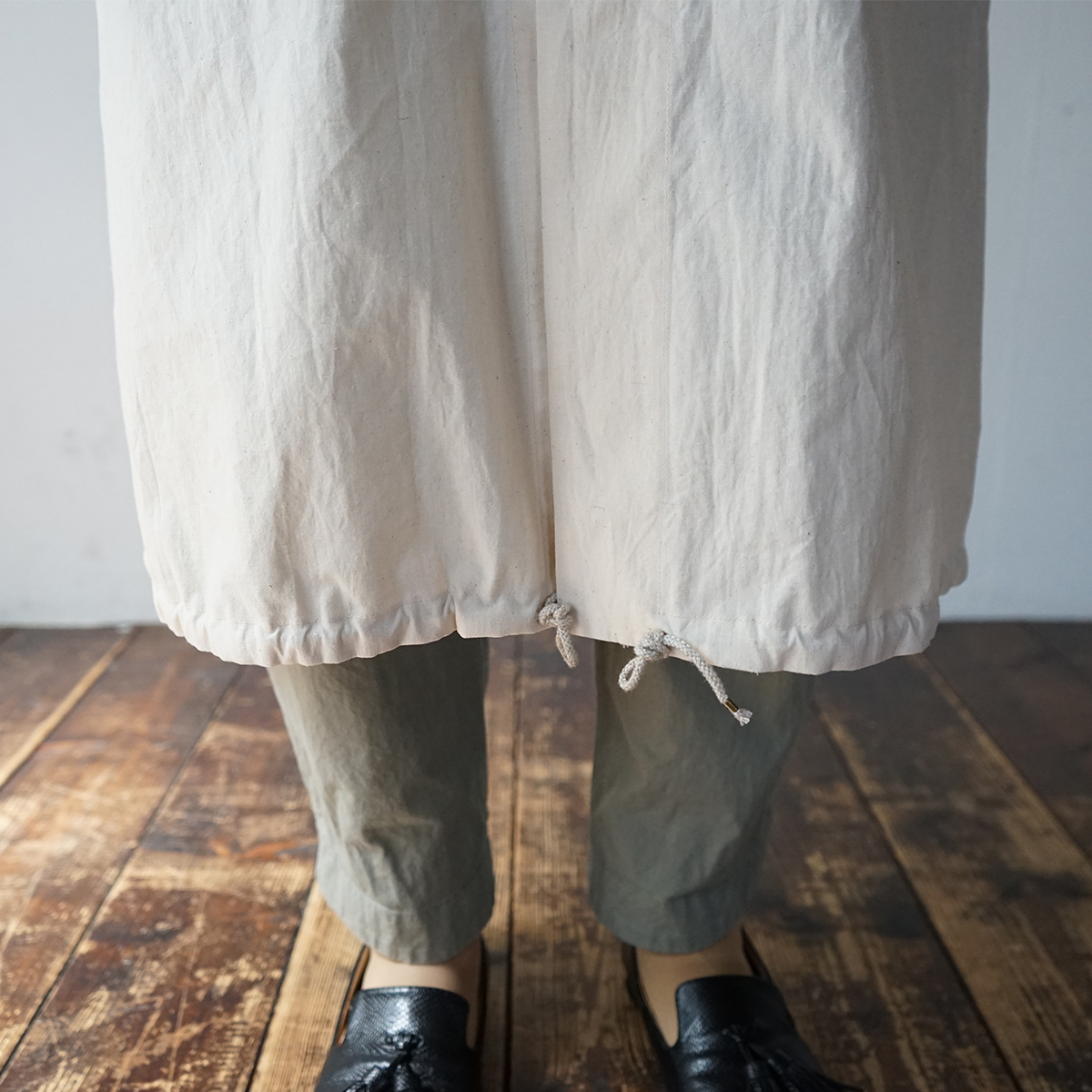 裾は紐で絞ることができます。