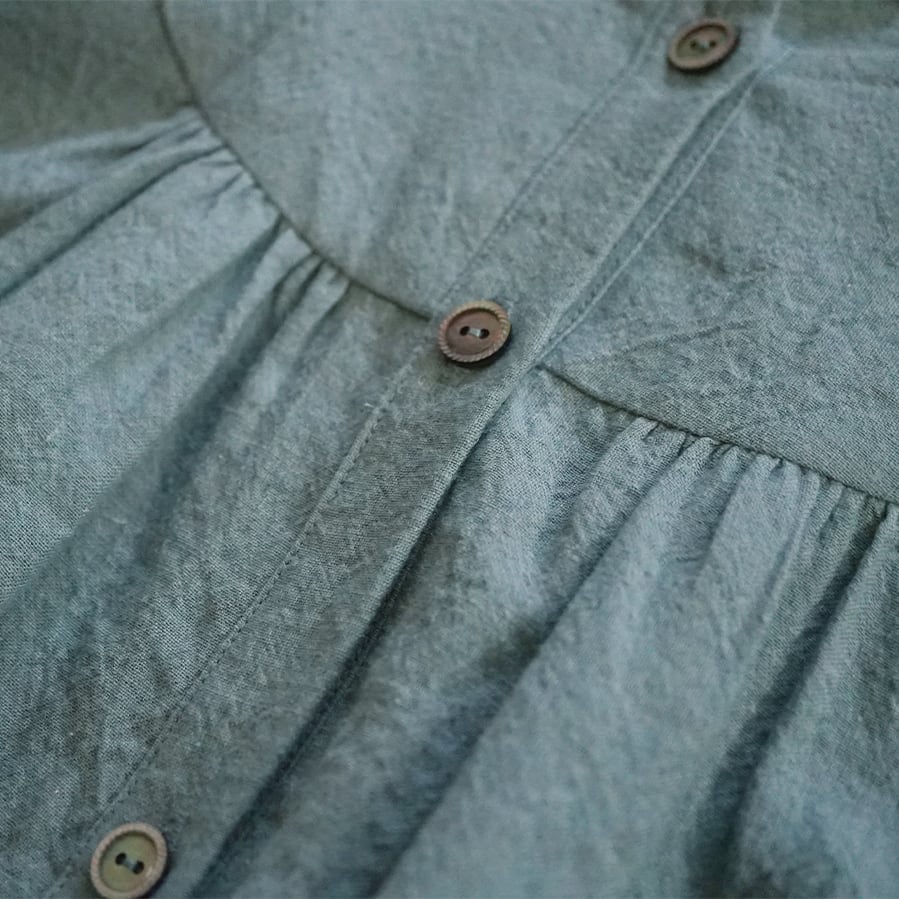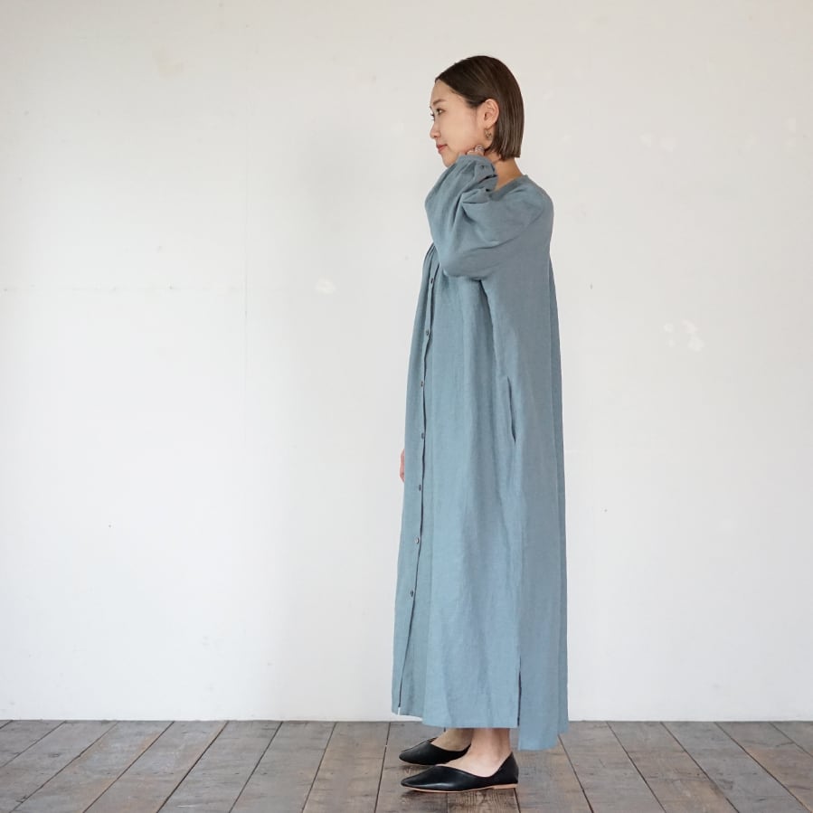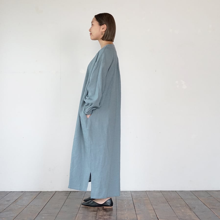 リネンコットンラウンドヨークOP[スモークブルー]