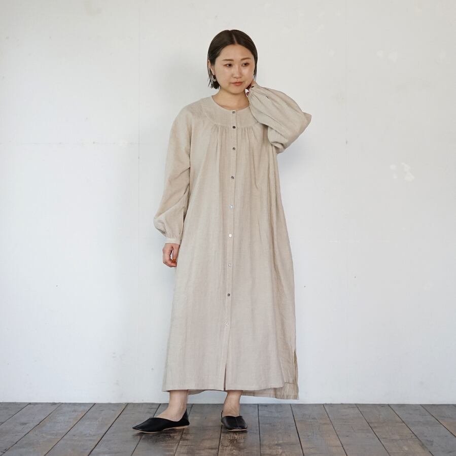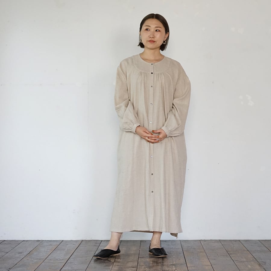 リネンコットンラウンドヨークOP[生成り]
