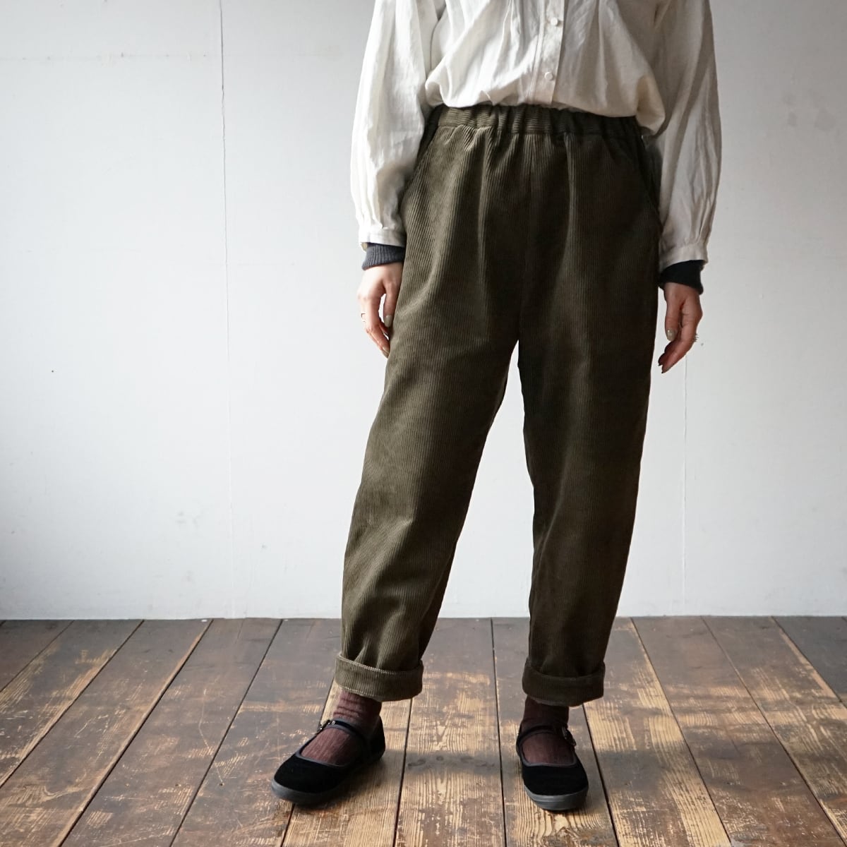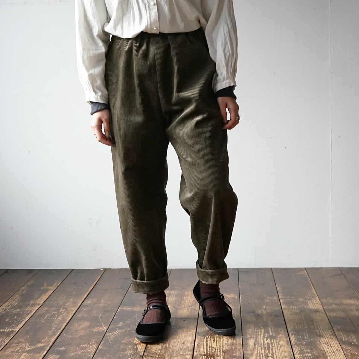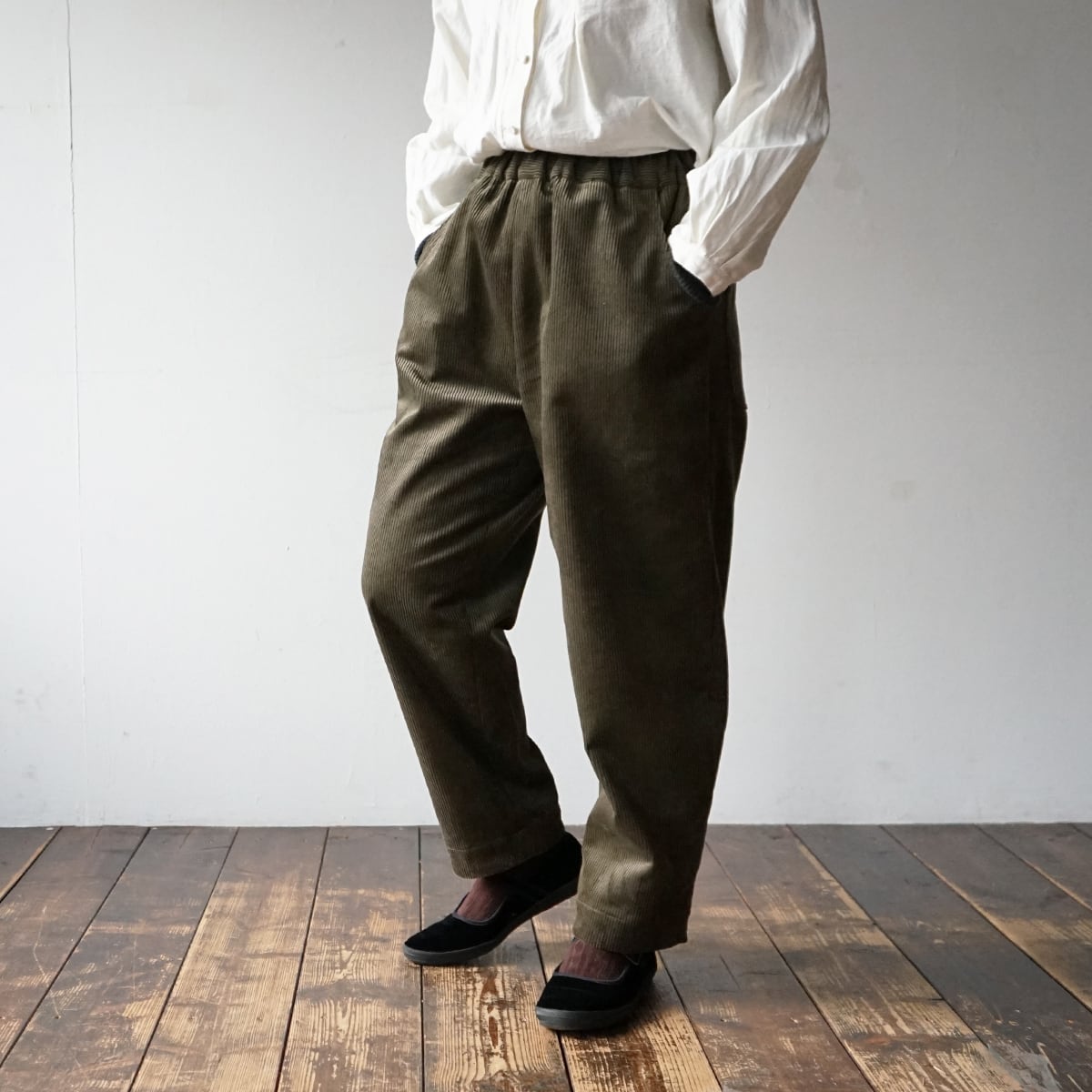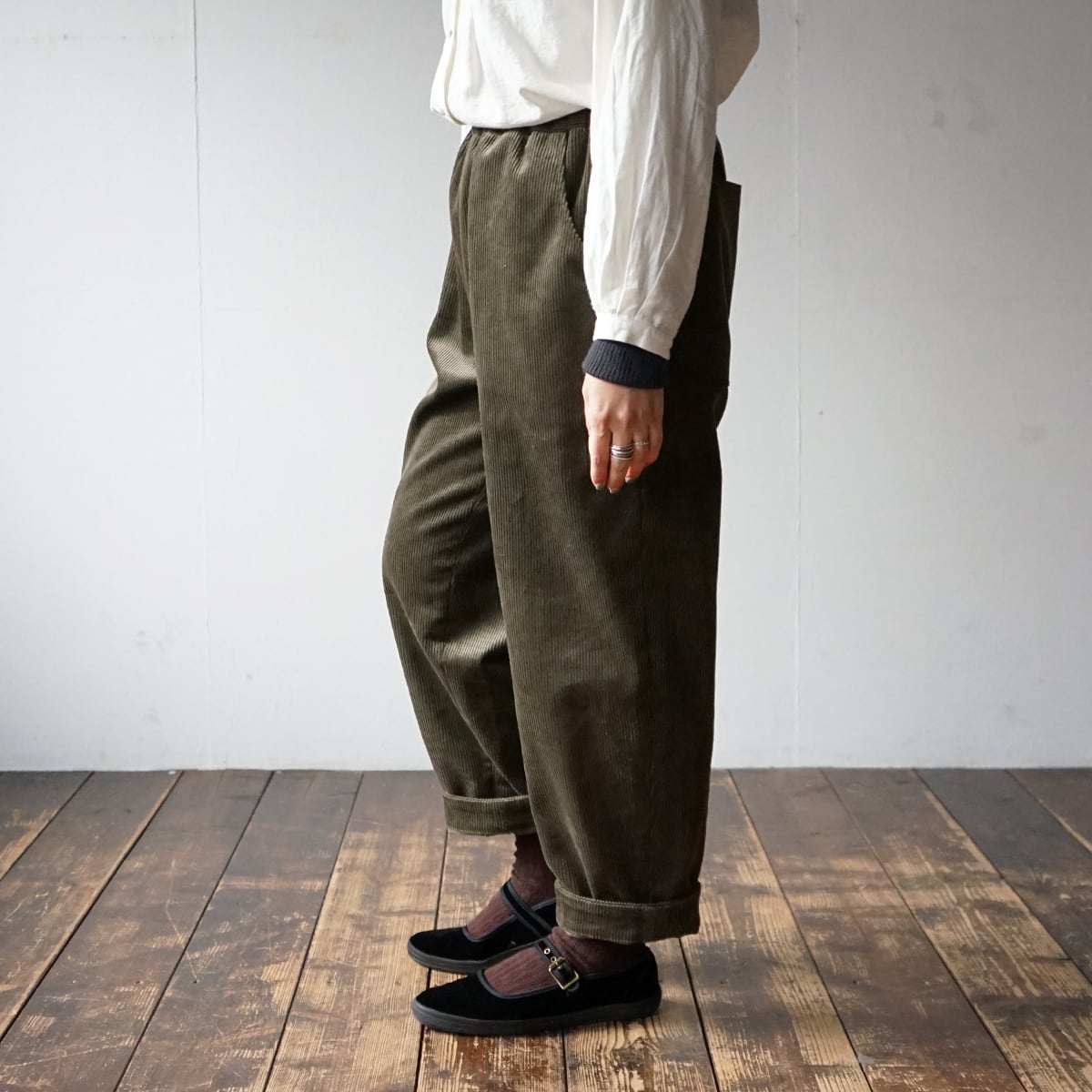 硫化染コーデュロイペッグトップパンツ[オリーブ][股下60cm]