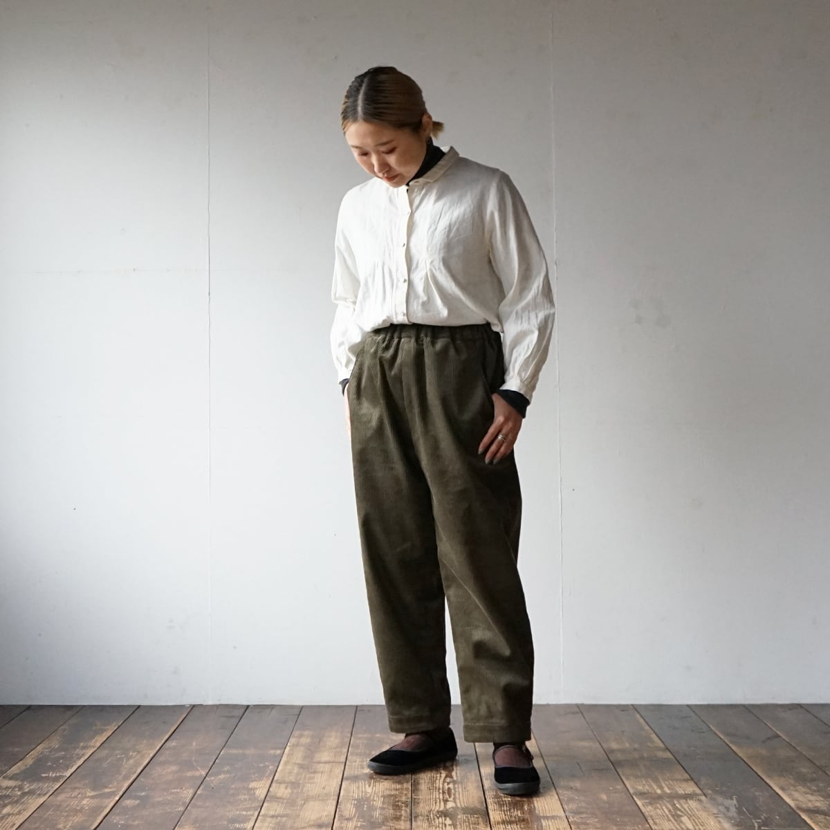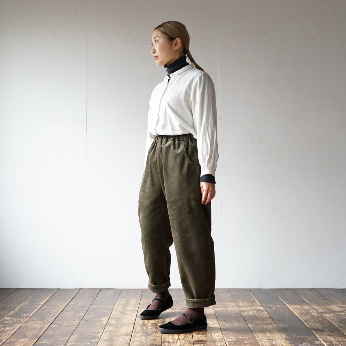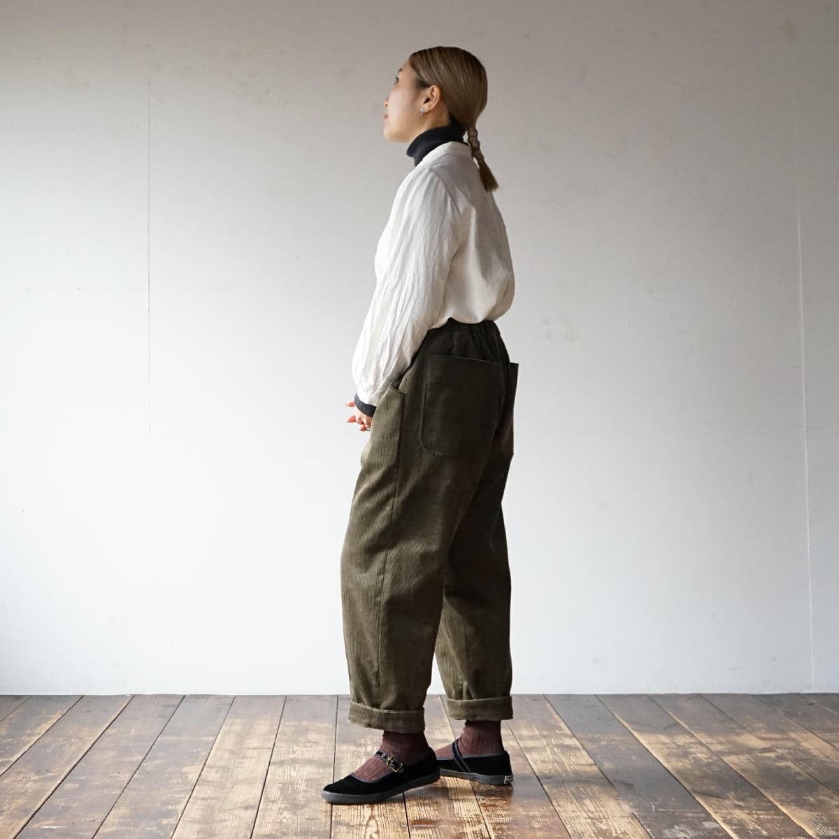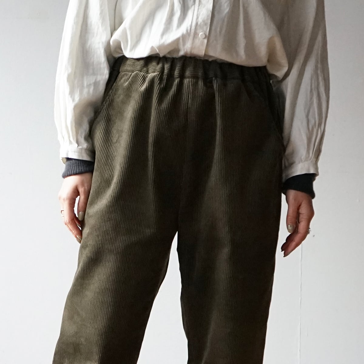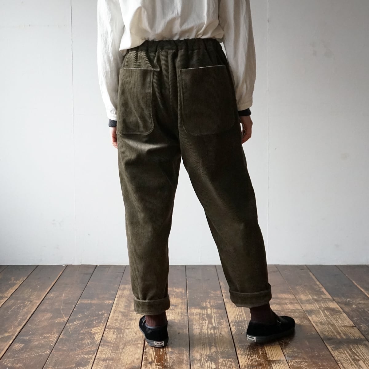 硫化染コーデュロイペッグトップパンツ[オリーブ][股下60cm]